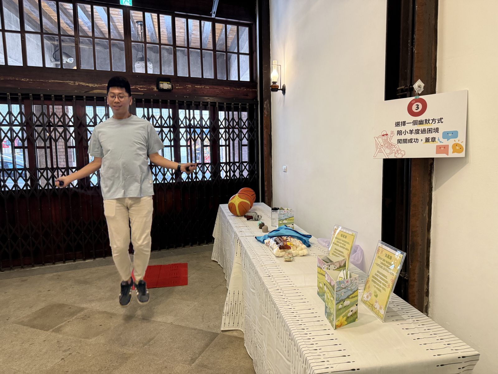 在「幽默」的關卡裡,練習面對挫折還能保持微笑,嘗試用運動、吃美食、捏紓壓球、甩手等方式紓壓,不是只能假裝堅強,也可以笑著說「我有事」,靜靜給自己一個深呼吸,一步一步慢慢來。