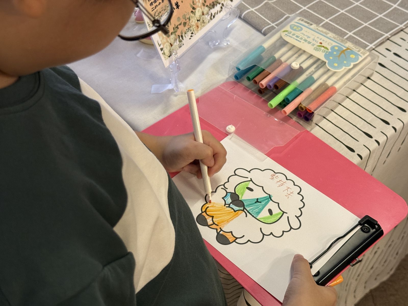 最後一關是「探索生命意義」,透過拼貼活動陪伴小羊看見自己內在價值與意義,這是大小朋友停留最久的的關卡,靜下心來為自己的小羊著色、創作,每一幅畫都是獨一無二的作品,許多孩子創作完捨不得留在展場,紛紛要求帶回家收藏!