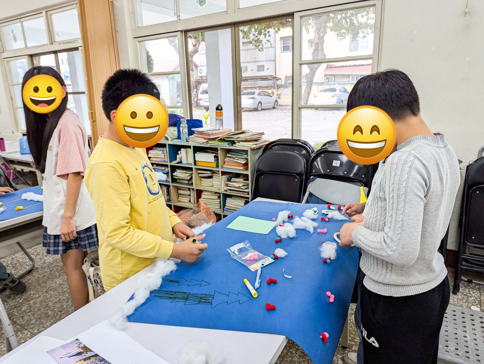 這場展覽的起點,是一場天馬行空的討論。當老師從天氣、節慶…切入引導時,孩子們的想像力瞬間迸發,聖誕節、冬天、平安,連《冬季戀歌》都蹦了出來!最後,在回訪學姊的助攻下,終於敲定「冰霜雪地」這個主題。有趣的是,真正要開始拍攝了,孩子們才後知後覺地緊張起來,抓著老師說:「投票時腦袋一片空白啦!哪知道怎麼拍呢?」讓人真是又好氣、又想笑。
