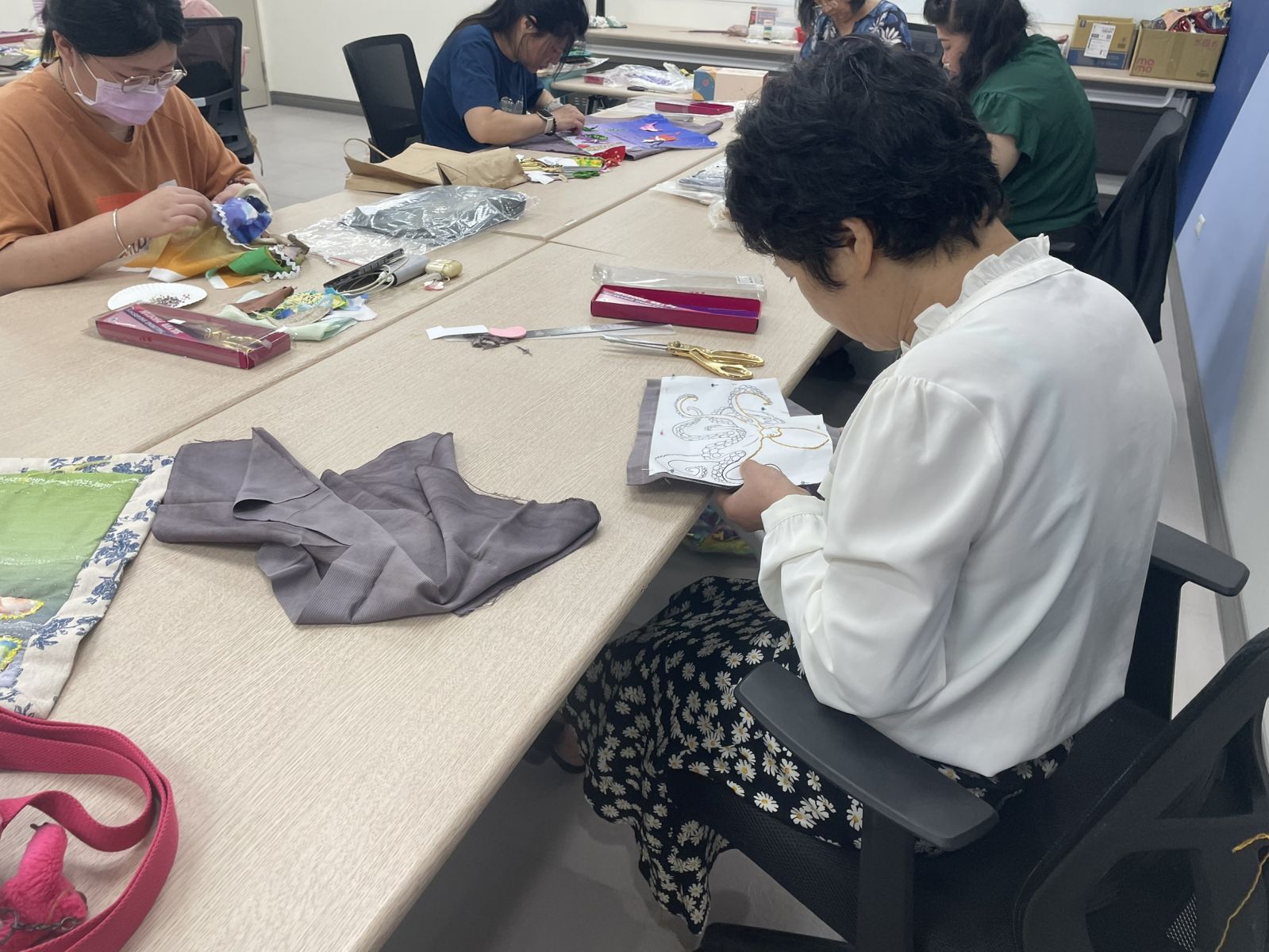 創作的過成並非總是一帆風順,當有學員擔心自己做不完時,個性不急不徐的同學總會適時出現,安慰她:「沒關係,有我在!」無論進度快或慢,大家都把巧思細細縫在作品中。