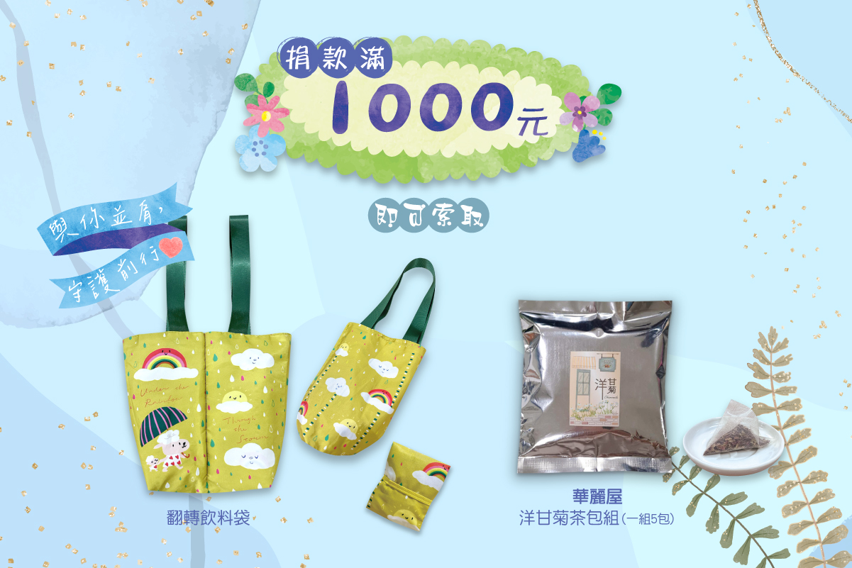 ※捐款滿額禮數量有限,索取完畢為止,若遇滿額禮贈完時,將以等值贈品替代,恕不另行通知,敬請見諒!