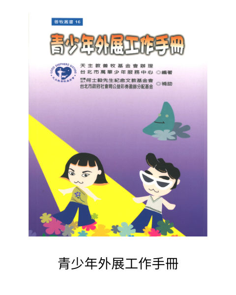 《CRC培力系列:CRC12 兒童被傾聽及意見獲考量的權利》:民國107年9 月12-13 日邀請貝爾法斯特女王大學社會科學學院教育與社會工作系教授Laura Lundy來臺,藉由兩天的工作坊,引導實務工作者從分享體驗的過程去理解兒童的表達權利、獲取知識的權利及兒童意見獲得考量的權利意涵。Laura Lundy 教授分享自己與不同年齡、處境兒童的合作經驗,並介紹以自己本名命名的參與模型“The Lundy model of child participation”, 本書內容即為Laura Lundy 教授兩天工作坊之課程實錄整理。 《「愛單親‧我同行」單親家庭服務實踐工作手冊》:面對不同單親類型的工作挑戰,工作者需要許多實務經驗磨練及系統化整理,以利在多元單親工作中,找到比較可以工作的路徑。《「愛單親‧我同行」單親家庭服務實踐工作手冊》整理善牧多年單親服務經驗,期望能提供工作者對不同單親家庭成員之敏感度並持續發展更為有效之處遇與介入模式。